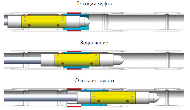 Активация муфт МСГРП происходит при помощи пуска и прокачки шаров различного диаметра в скважину, начиная с самого малого. Муфты спускаются в составе хвостовика в комплекте с набухающими или гидромеханическими пакерами.